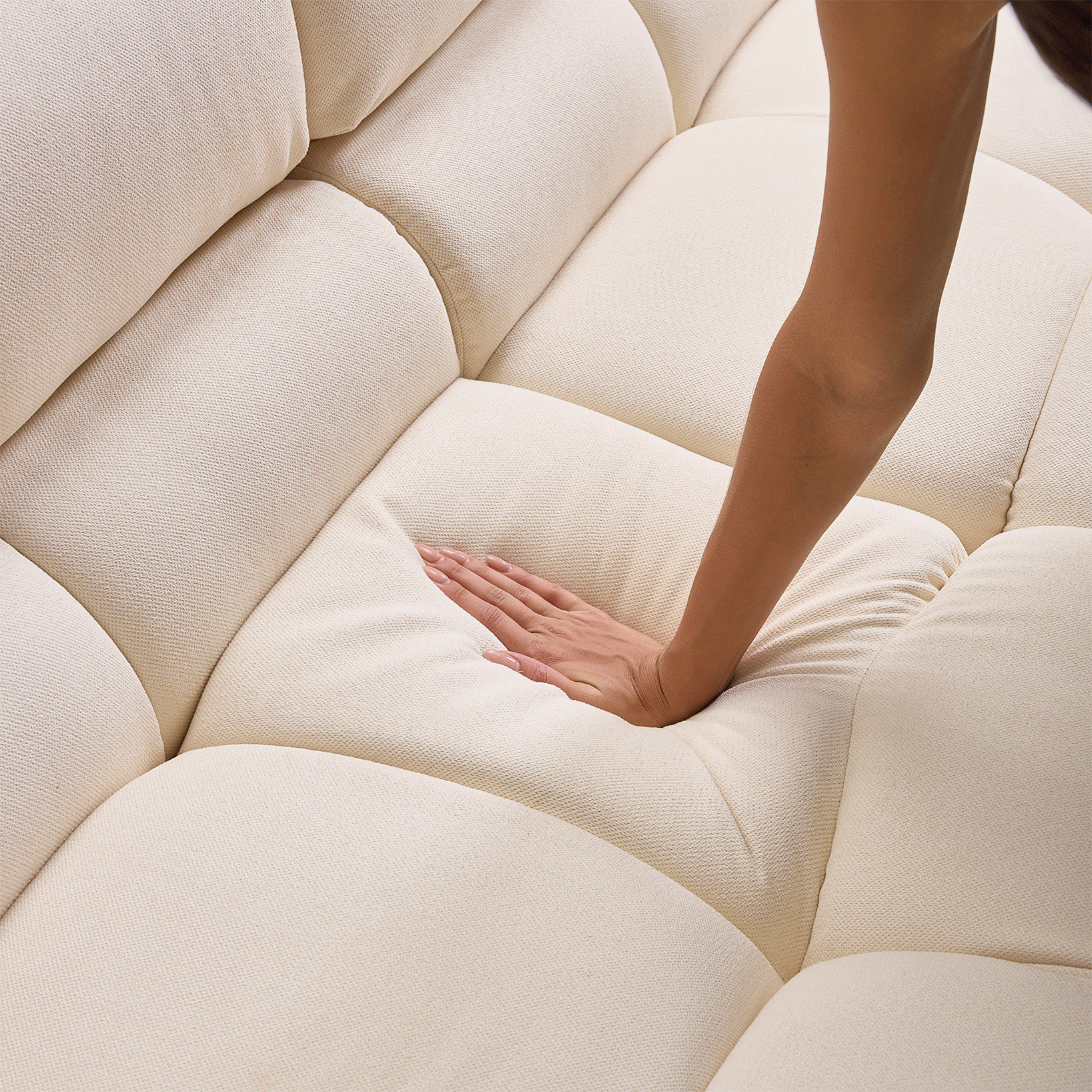 Experience true craftsmanship with The Amora. Each tuft is expertly threaded and knotted, creating stunning quilted patterns that provide both comfort and style. With 80-100 hours of dedicated artisan work, this sofa is a durable and beautiful work of art for your home.