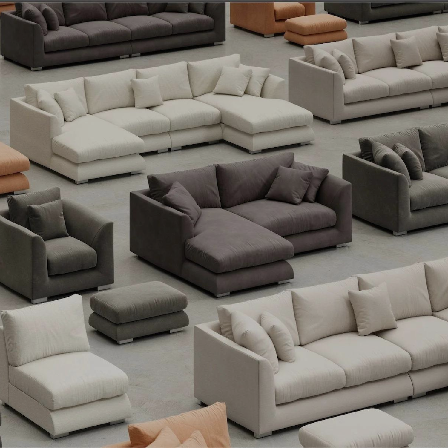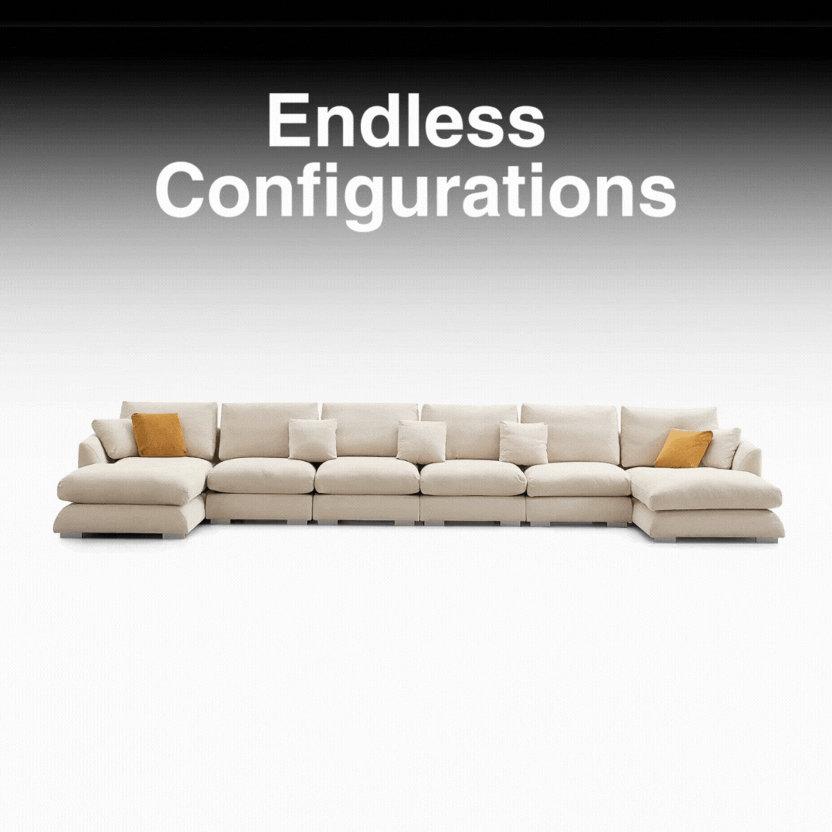 Yes! Our feathers collection is full modular design so you can configure your lounging to fit your space perfectly. Unlike other modular sofas which come with only 3 different pieces to play with, the feathers collection comes with 9 different pieces to create the perfect lounging customization, ensuring your sofa does look great and doesn’t look like that boxy, lego/ikea style sofa. The main difference is that we have a real chase, that is a one big piece of corner with one big cushion less cracks and smoother look on the eye. We also have corner pieces, ottoman, armless chairs and armchairs so the feathers can grow and fit your space perfectly anywhere you go.