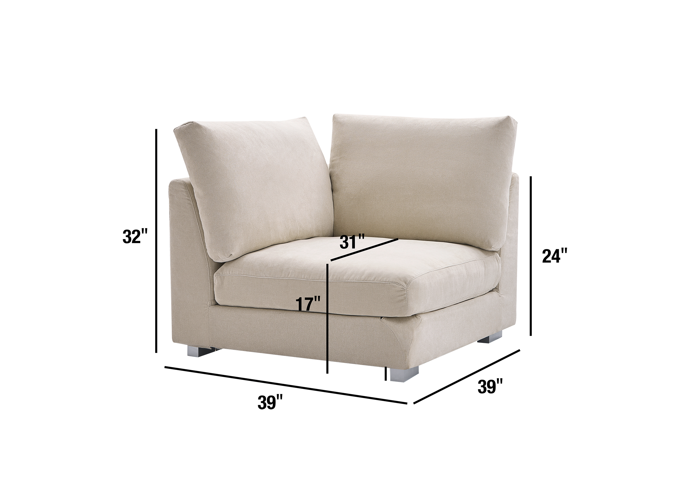 The body of the sofa has been meticulously crafter with a frame constructed from durable Pine Wood. The legs are carved from Ashwood and finished with metallic paint for a dash of modern flair. The seating is constructed using an ideal mix of filling materials, featuring 25% polyurethane foam pad, 3% polyester fiber, 29% polyester fiber batting, and a substantial 43% duck feathers, culminating in supreme comfort without compromising structural integrity.