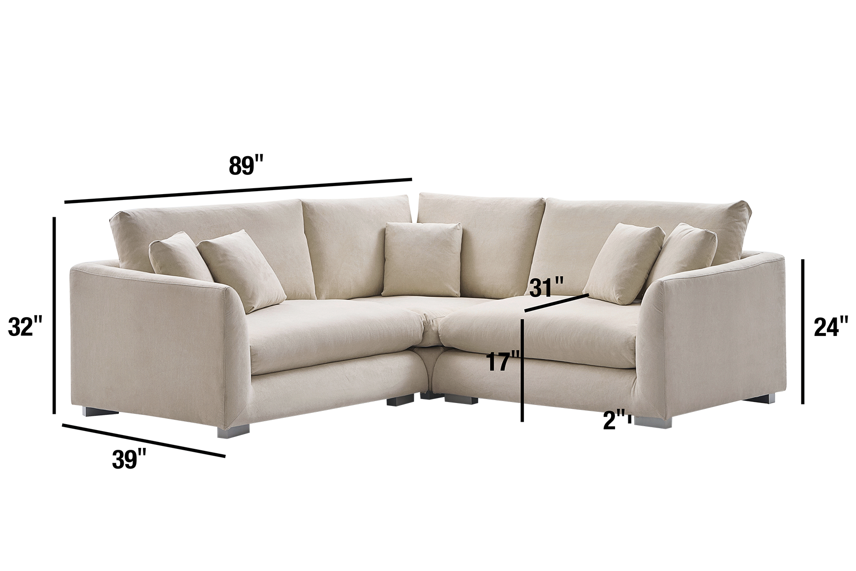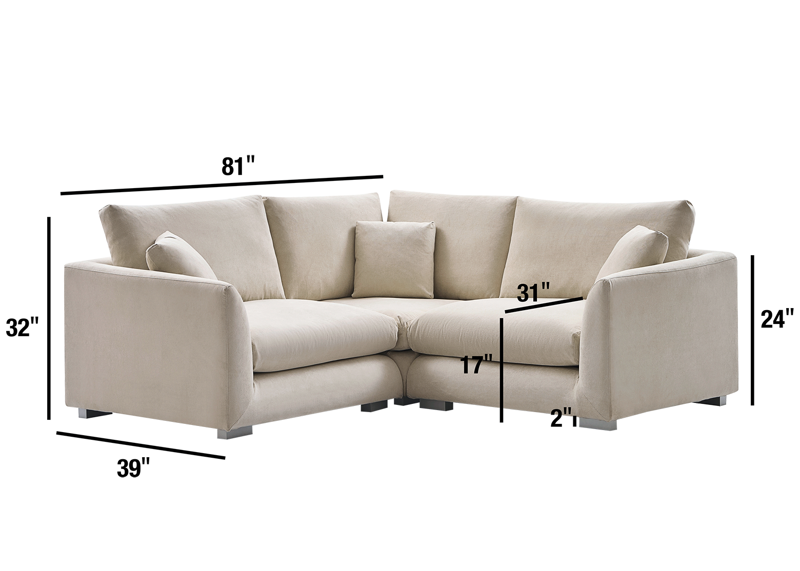 The body of the sofa has been meticulously crafter with a frame constructed from durable Pine Wood. The legs are carved from Ashwood and finished with metallic paint for a dash of modern flair. The seating is constructed using an ideal mix of filling materials, featuring 25% polyurethane foam pad, 3% polyester fiber, 29% polyester fiber batting, and a substantial 43% duck feathers, culminating in supreme comfort without compromising structural integrity.