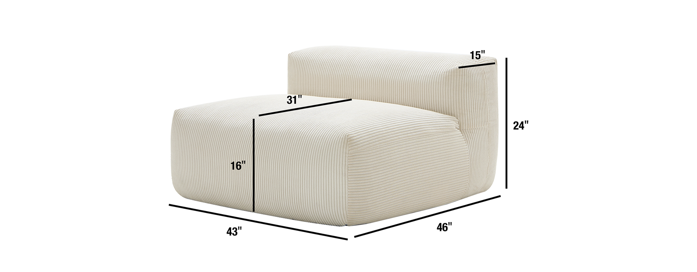The sofa is free from hard frames or wire springs and is made from layers of cotton cushion, feathers, memory foam, latex foam, and high-resilience foam, all covered in plush corduroy to ensure you never compromise on comfort.
