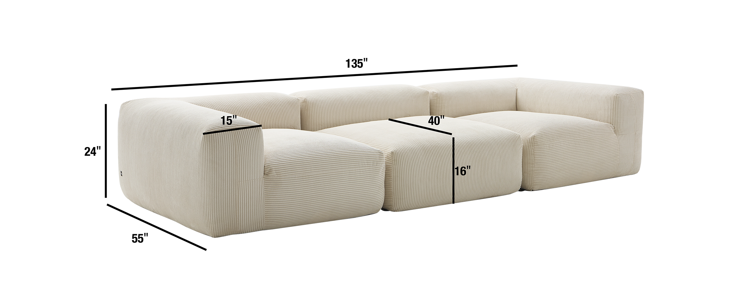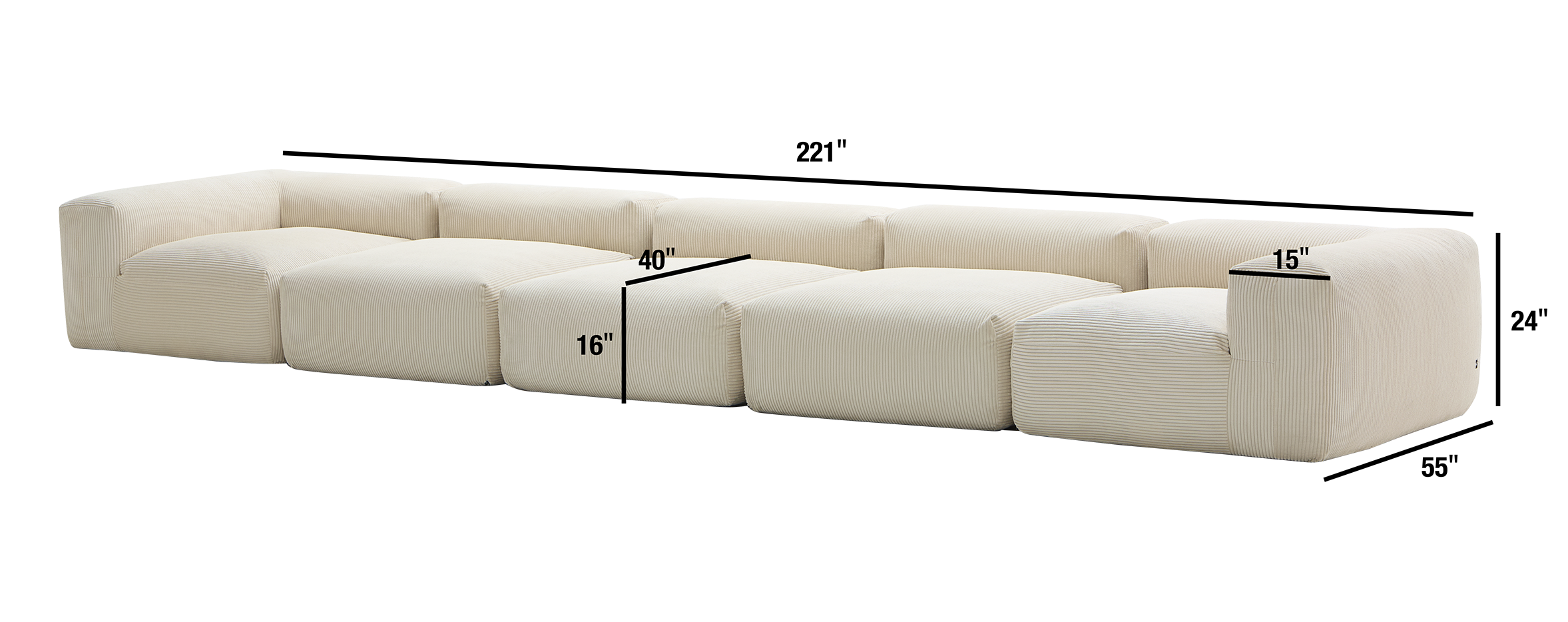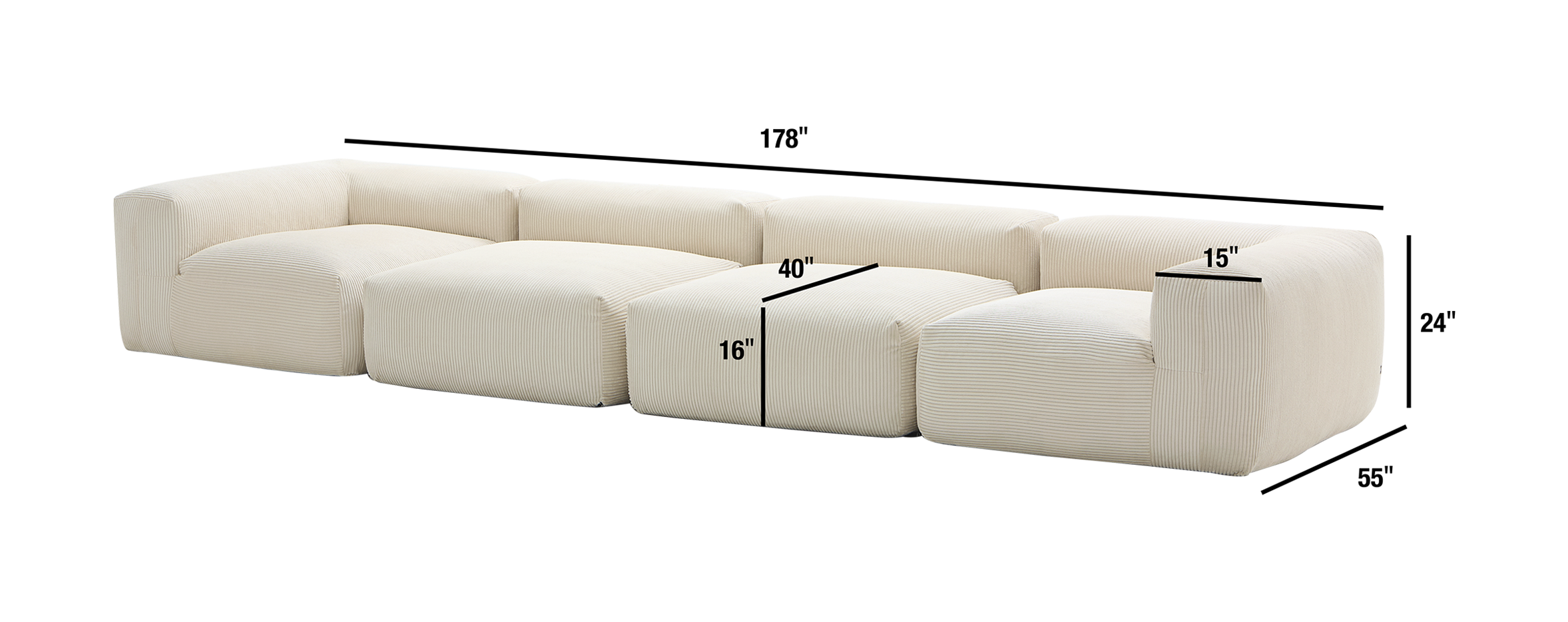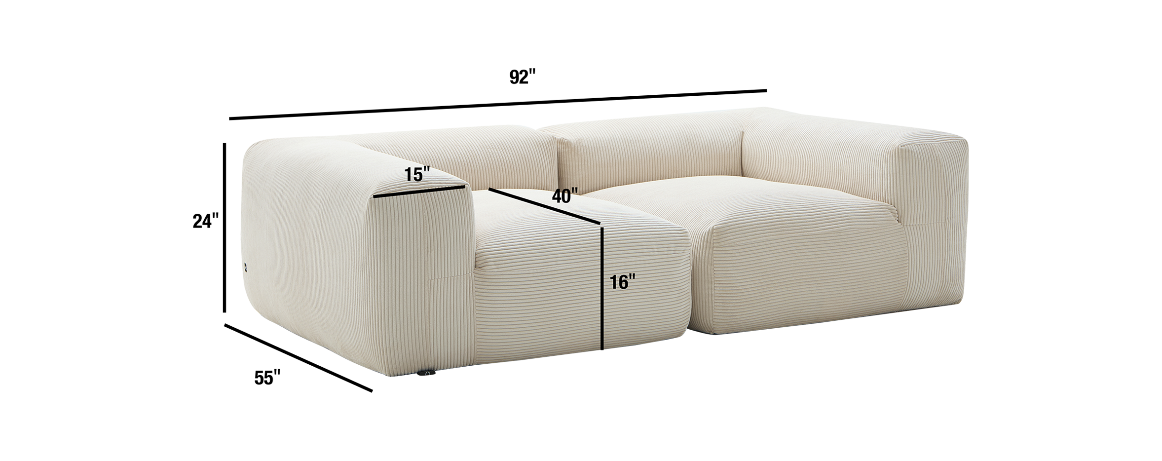 The sofa is free from hard frames or wire springs and is made from layers of cotton cushion, feathers, memory foam, latex foam, and high-resilience foam, all covered in plush corduroy to ensure you never compromise on comfort.